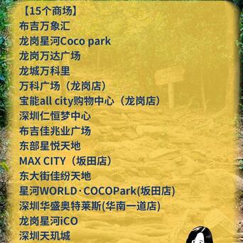 【15个商场】 布吉万象汇 龙岗星河Coco park 龙岗万达广场